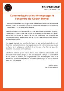 Dans un communiqué en date du 24 avril 2026, la Ligue Ivoirienne des Droits des Femmes s’est prononcée sur les accusations multiples de violences sexuelles et sexistes visant « Coach Mehdi ».