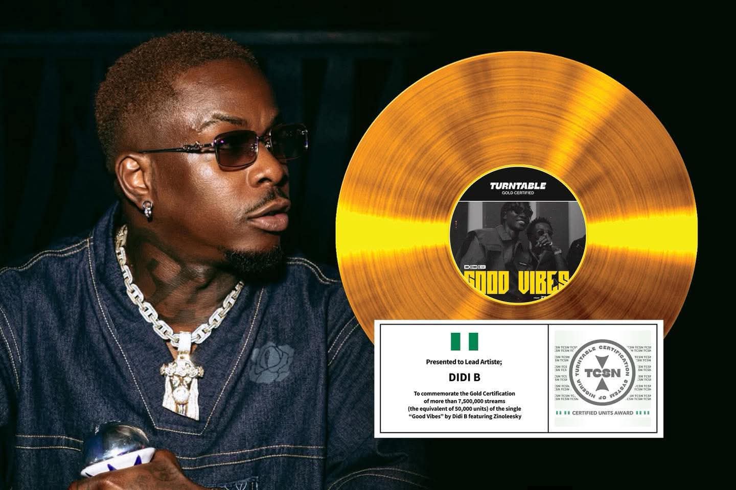Rappelons que Didi B a été certifié au Nigeria avec un Disque d’Or avec le titre « Good Vibes », en collaboration avec Zinoleesky, une distinction délivrée par la TCSN, qui vient récompenser les excellentes performances du morceau sur les plateformes de streaming et son fort impact auprès du public.