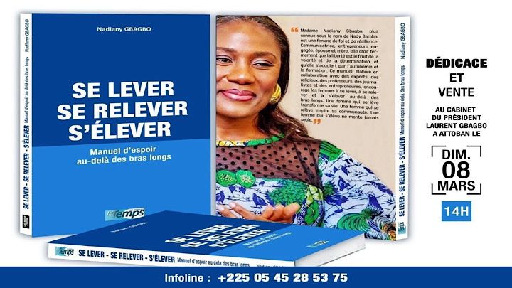 Nadiany Gbagbo, plus connue sous le nom de Nady Bamba, a annoncé la sortie de son nouveau livre, « Se lever se relever s’élever ». La cérémonie de dédicace et vente aura lieu le dimanche 8 mars 2026 à Attoban, au Cabinet de Laurent Gbagbo à Abidjan.
